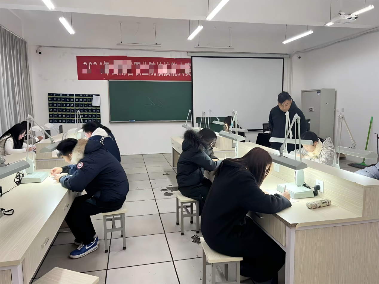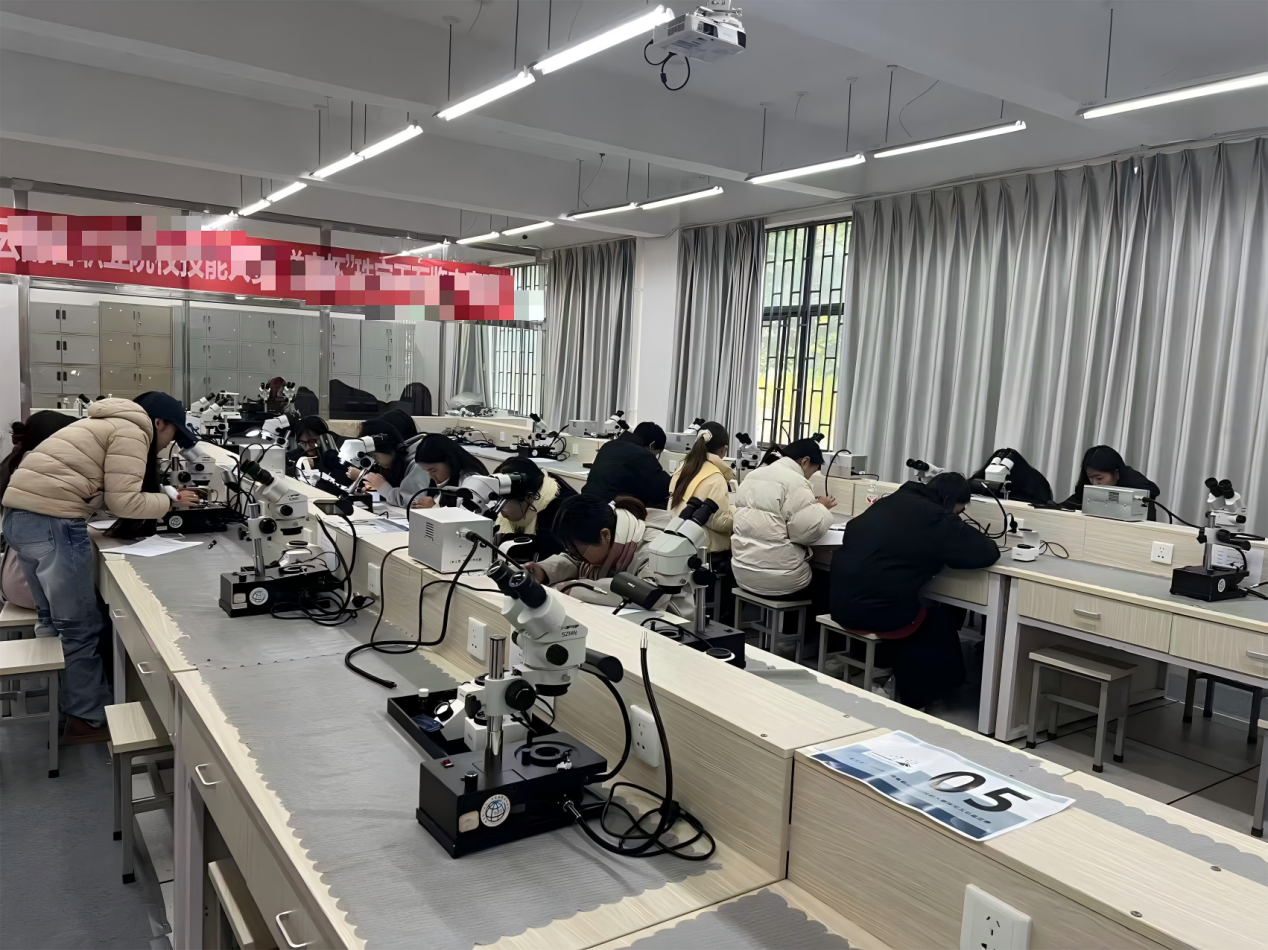 竞赛内容严格对标《珠宝玉石鉴定职业技能等级标准》,设置笔试、实操及个人技能展示三个环节,全面考核选手的理论基础、实践能力与综合素养。