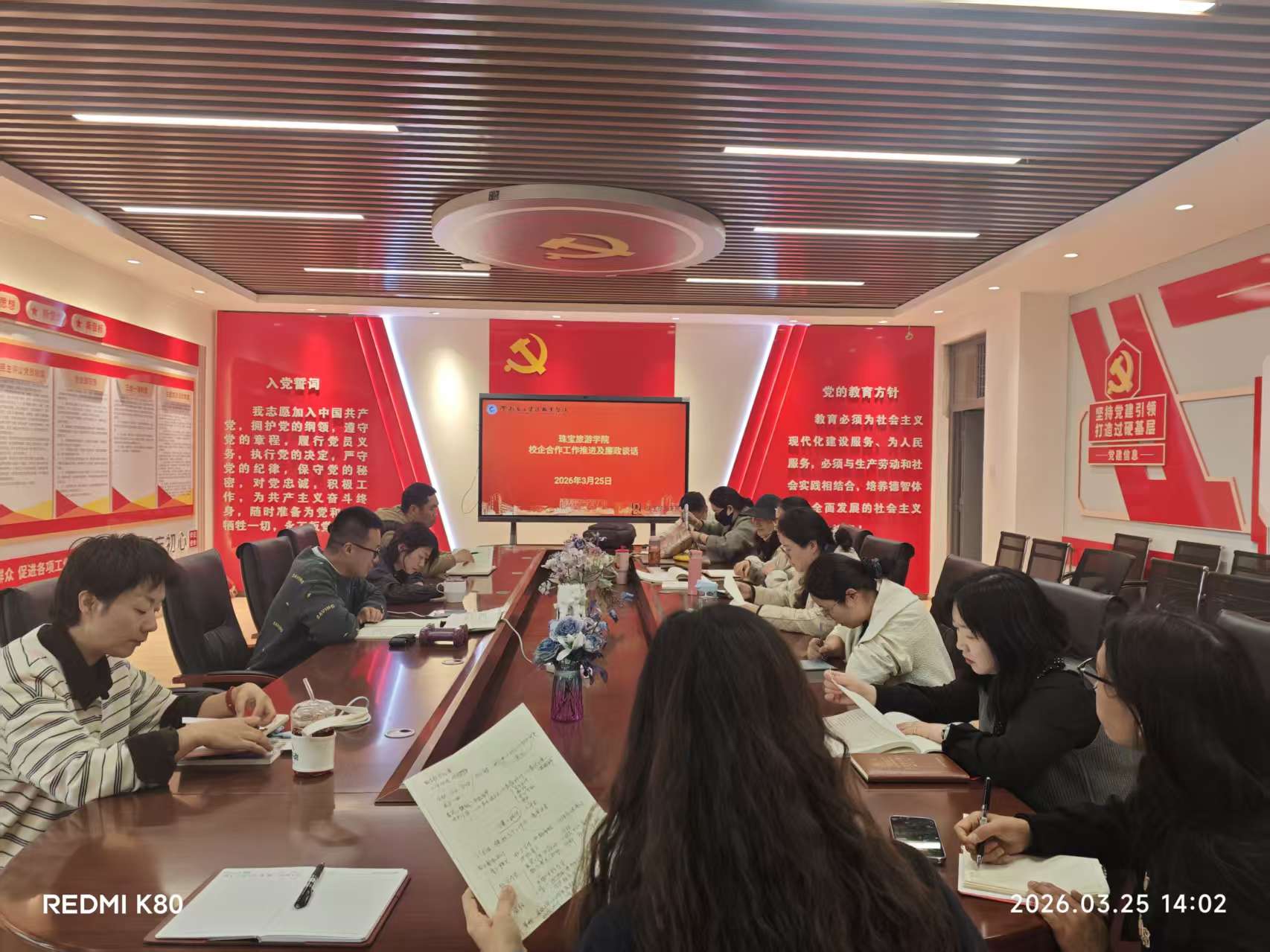 3月25日,珠宝旅游学院在勘物楼A303室召开校企合作与就业工作推进会暨廉政提醒谈话会。学院纪检委员、副院长、综合办主任、教学办主任、教研室主任及专业带头人等相关人员参会。