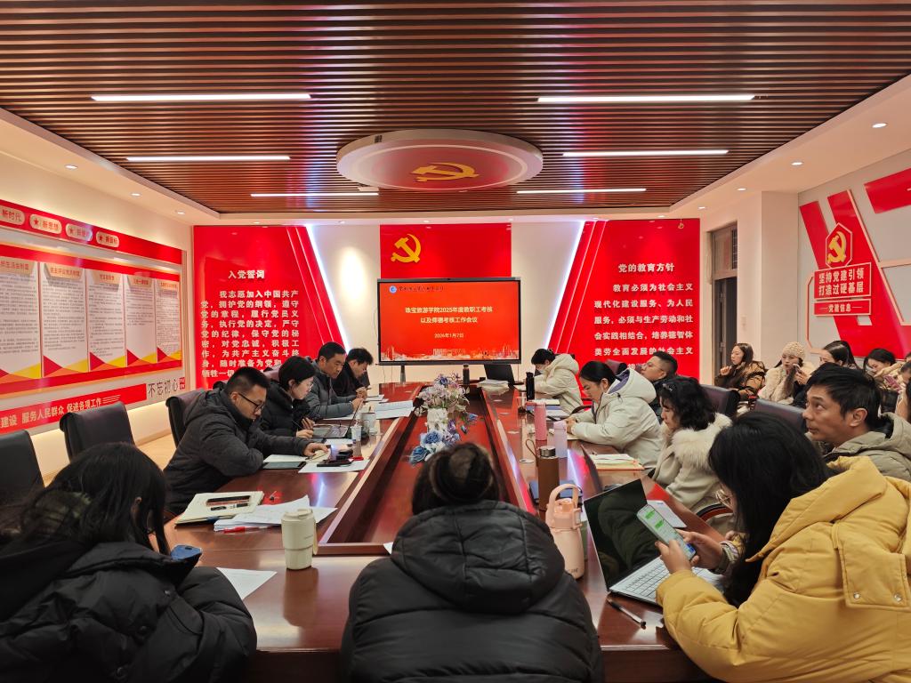 1月7日下午,珠宝旅游学院在勘物楼A303党建室召开2025年度教职工考核及师德考核工作会议,会议由学院党委副书记张高参主持。