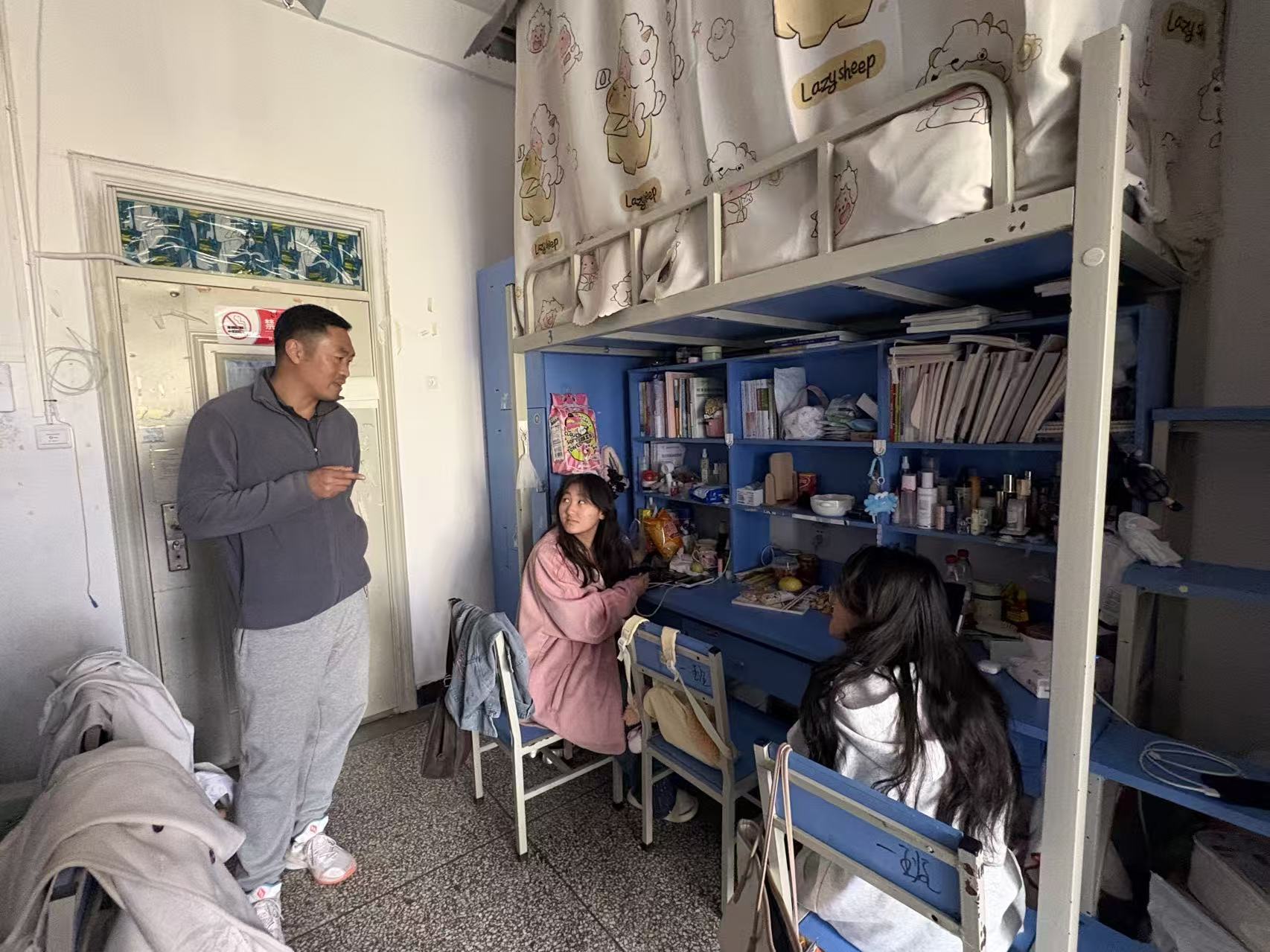 温情关怀:班主任深入走访学生宿舍。为深入了解学生返校后的思想动态与实际需求,学院组织开展了全覆盖式的宿舍走访活动。班主任们走进学生宿舍,与同学们亲切交谈,详细询问假期生活、新学期规划及生活困难。在走访中,老师们不仅排查了宿舍内的安全隐患,还反复叮嘱同学们注意春季传染病防控、保持宿舍卫生整洁,共同营造温馨、安全、文明的住宿环境 。